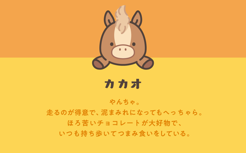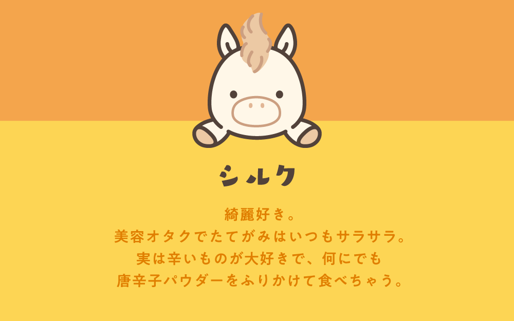 Funbarus Posture Pal (Regular) Horse series features two types: “Cacao,” with a brown coat, and “Silk,” with a white coat. With Cacao and Silk by your side, your luck might just take a turn for the better!